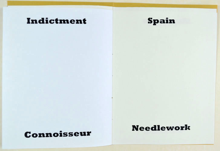 Laser printer on paper (reclaimed book endpapers), 21 x 15 cm.