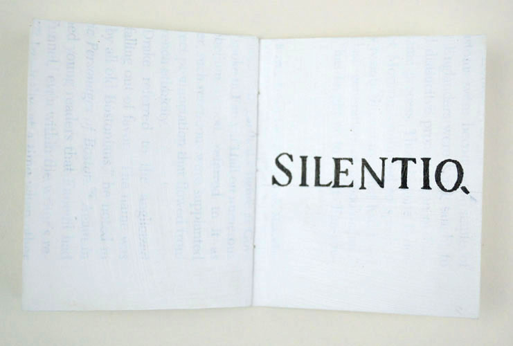 The Latin motto, Aut tace aut loquere meliora silentio, translates as 'Stay silent unless what you have to say is better than silence' and comes from a self portrait by Salvator Rosa in the National Gallery, London. Made for the exhibition Library Thoughts, Hungarian Multicultural Centre, Budapest, 2011