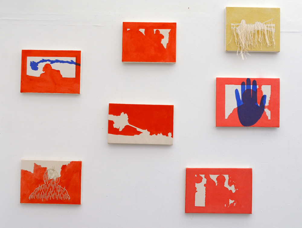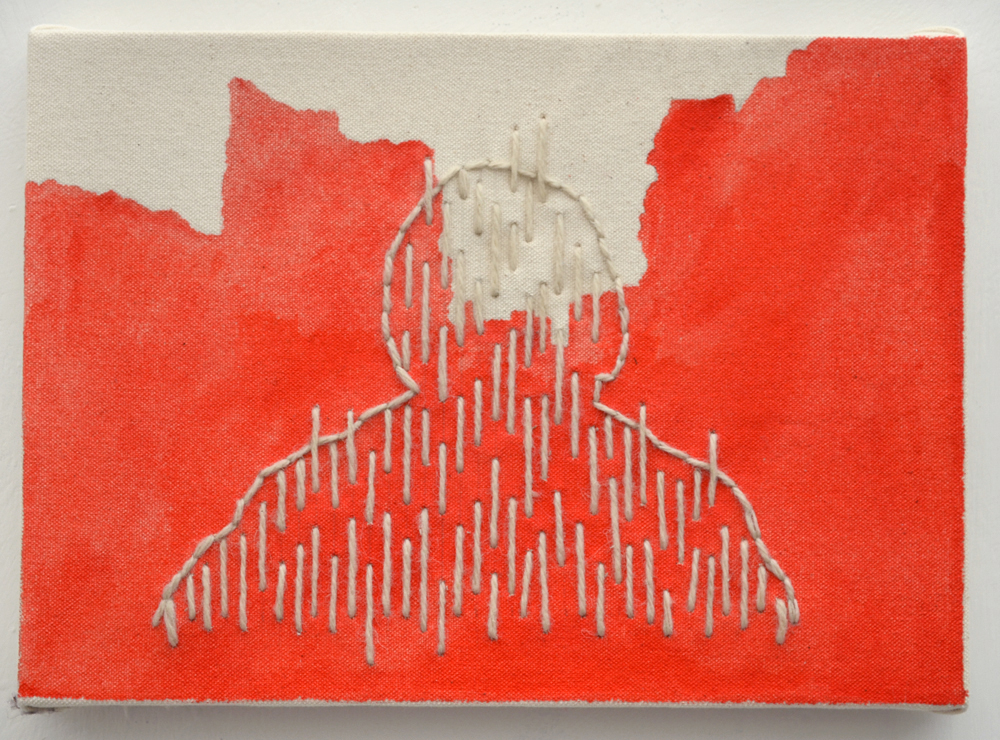 Ellipsis 14, rabbit skin glue, pigment and wool yarn on unprimed canvas, 19.5 x 27cm, 2023