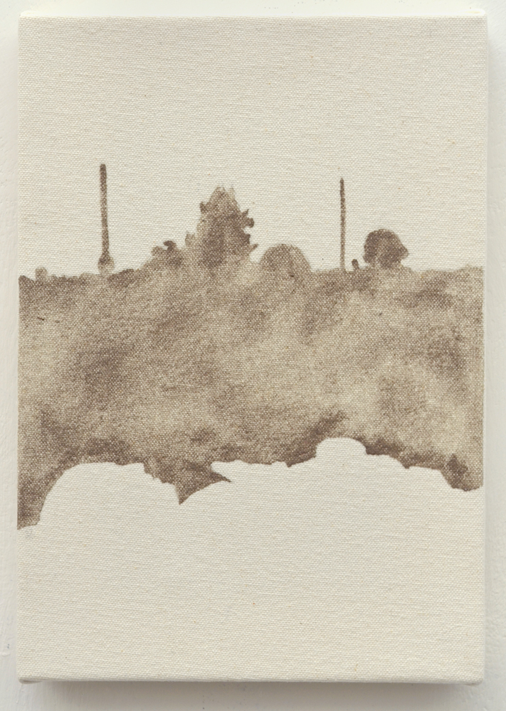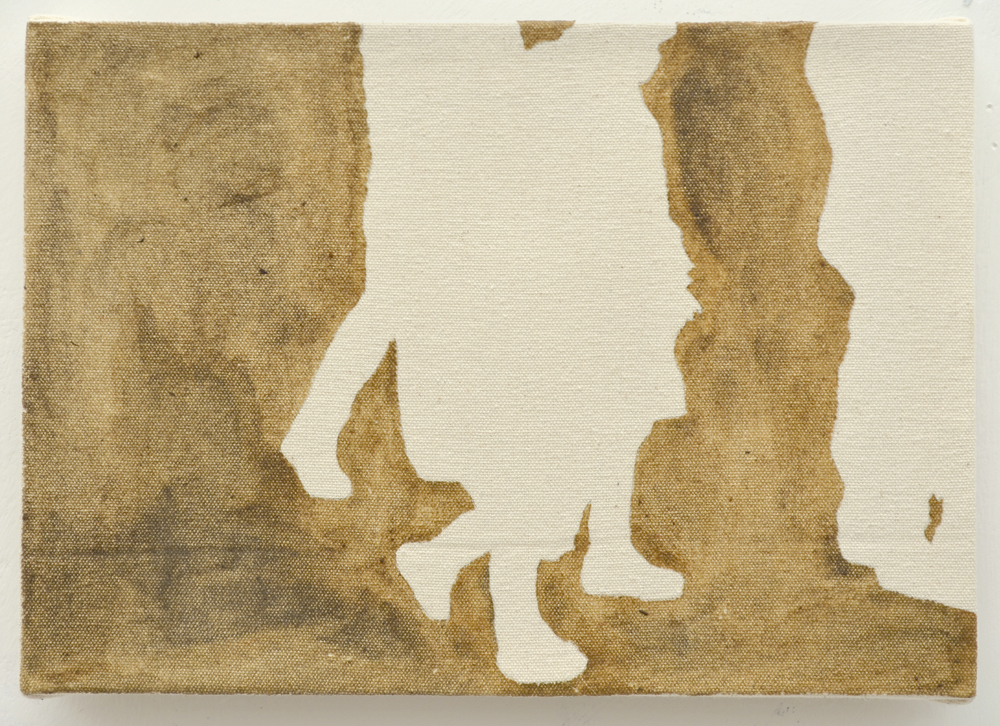 Ellipsis 39, Rabbit skin glue, pigment and tea leaves on unprimed canvas, 2023