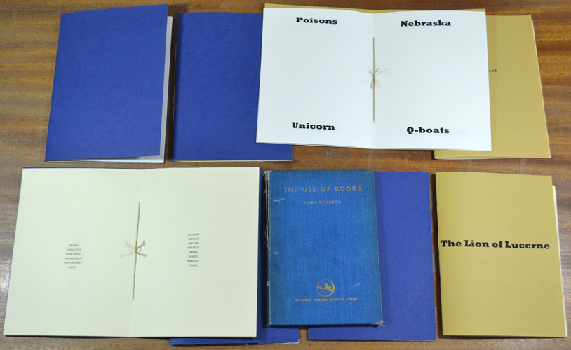 From a set of books made made for the project Library of Lost Books, in which artists were sent books withdrawn from Birmingham City Library. I was sent the book The Use of Books, by Mary Gillespie, 1947, a manual in the use of books and libraries for children. I was interested in the many lists contained in the book. To see the individual books, please navigate back to the 'artist's books' page.
