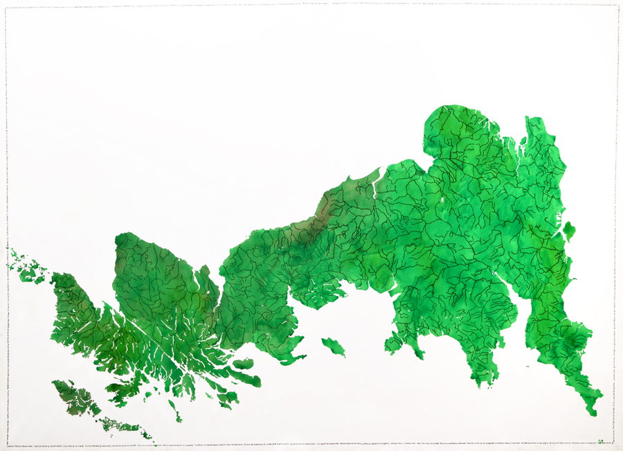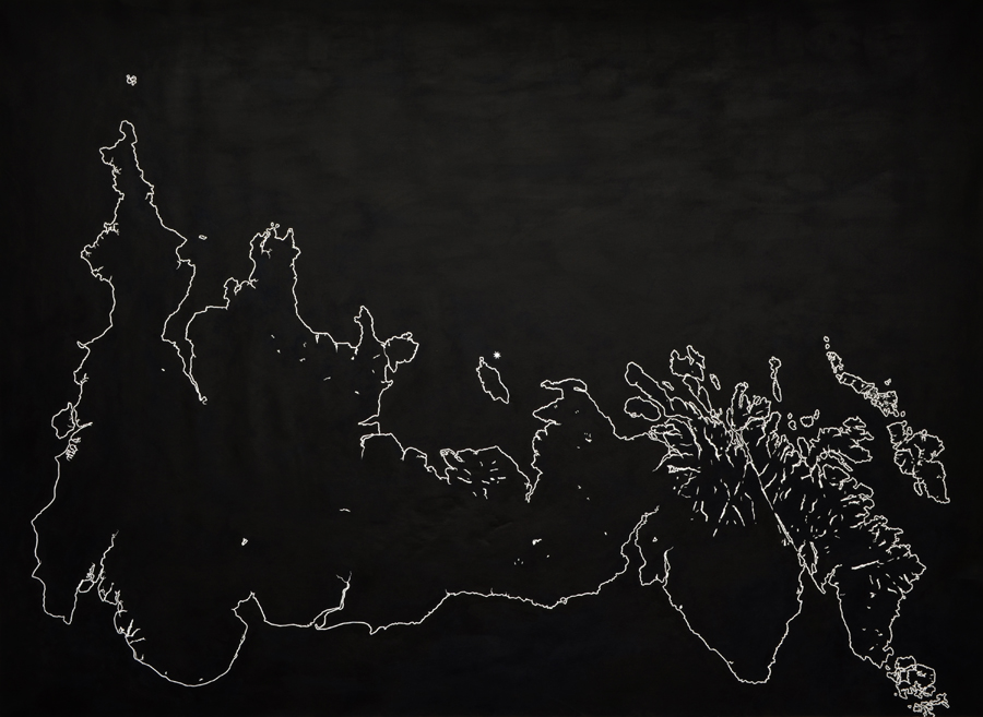Acrylic and ink on canvas, 164 x 227cm.
