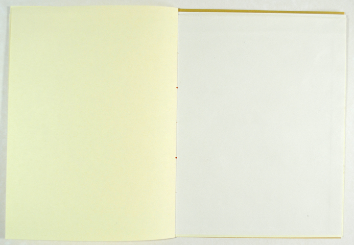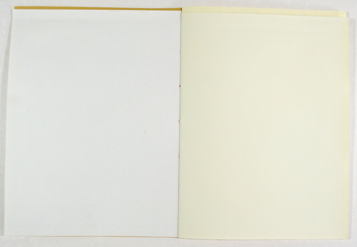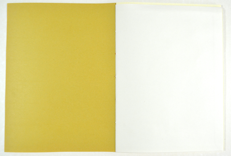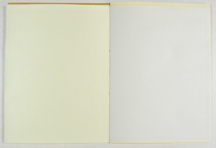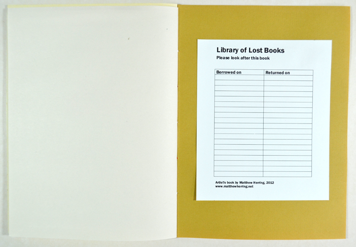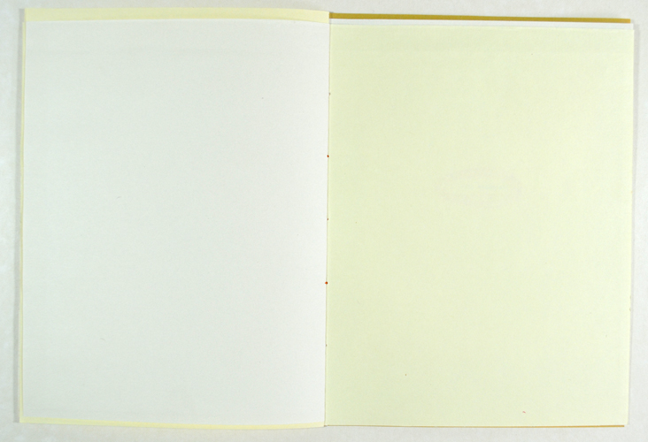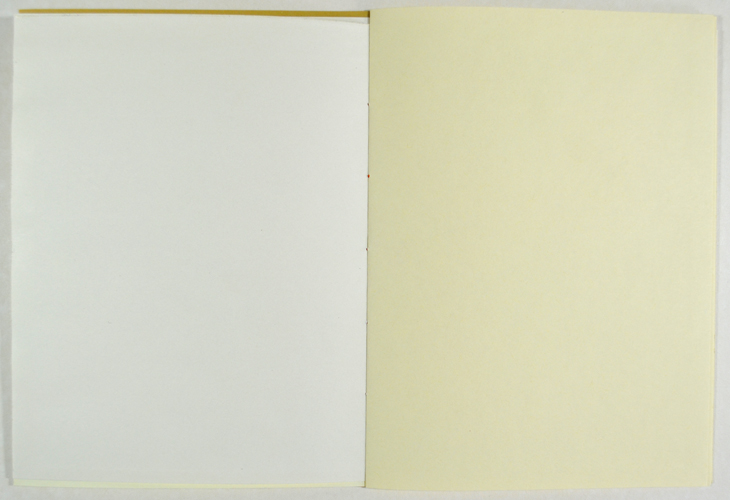 Laser printer and coloured crayon on paper (reclaimed book endpapers), 21 x 15 cm.