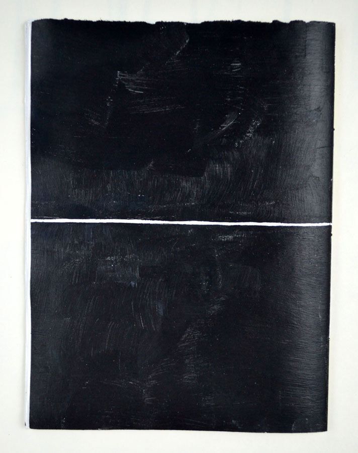 Acrylic and ink on reclaimed paper from academic journal, 15 x 12 cm.