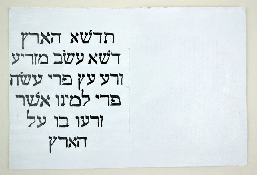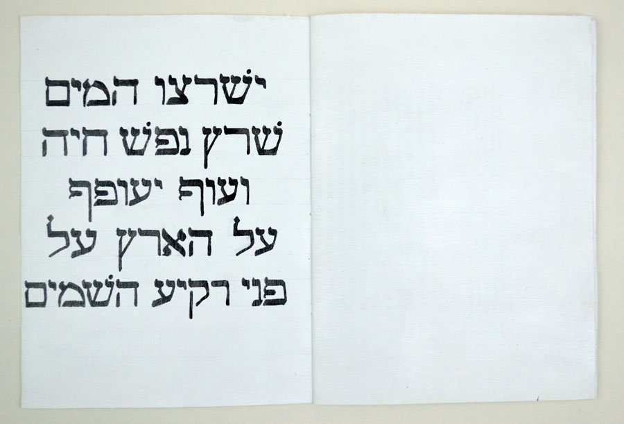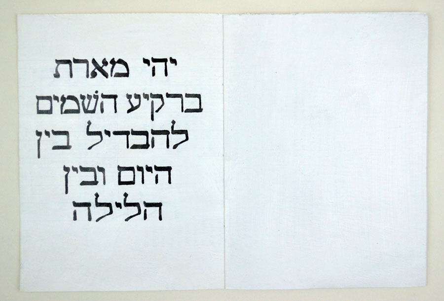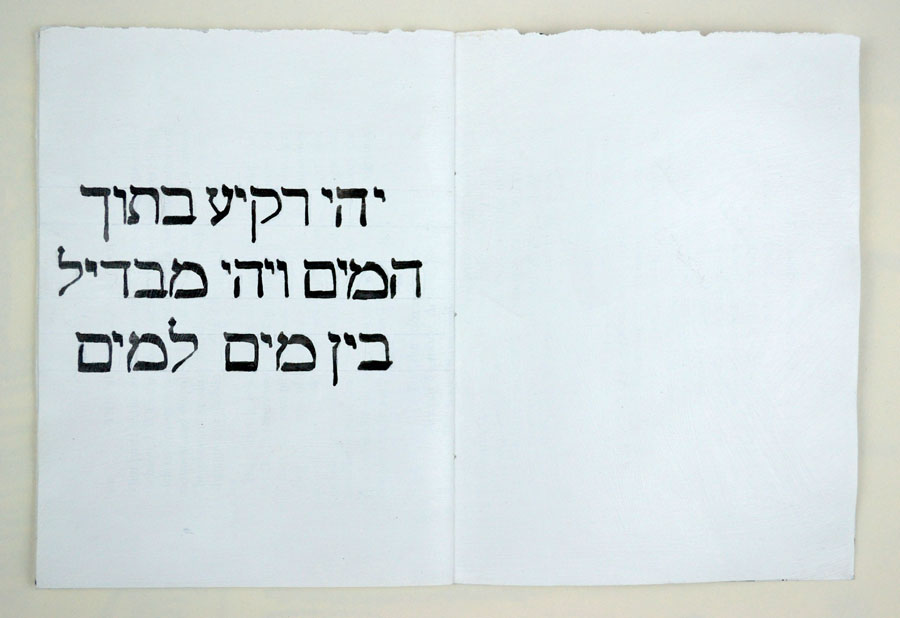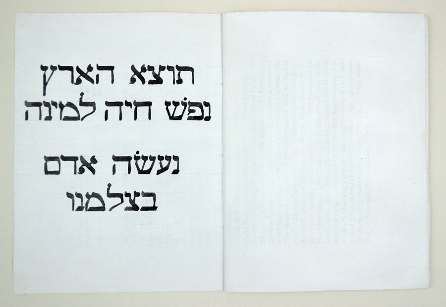 Sit contains the seven 'let there be' statements in Genesis 1 in the Bible in Hebrew. 'Sit' is Latin for 'let there be' (the usual Latin translation of the bible has 'fiat' - 'let there be made' - but I prefered the double Latin/English meaning of 'sit'). Made for the exhibition Library Thoughts, Hungarian Multicultural Centre, Budapest, 2011