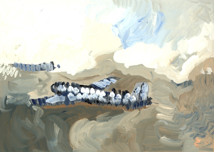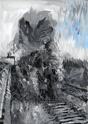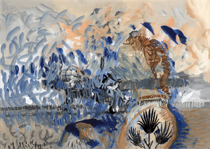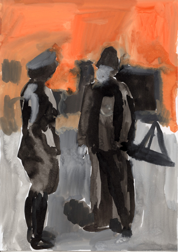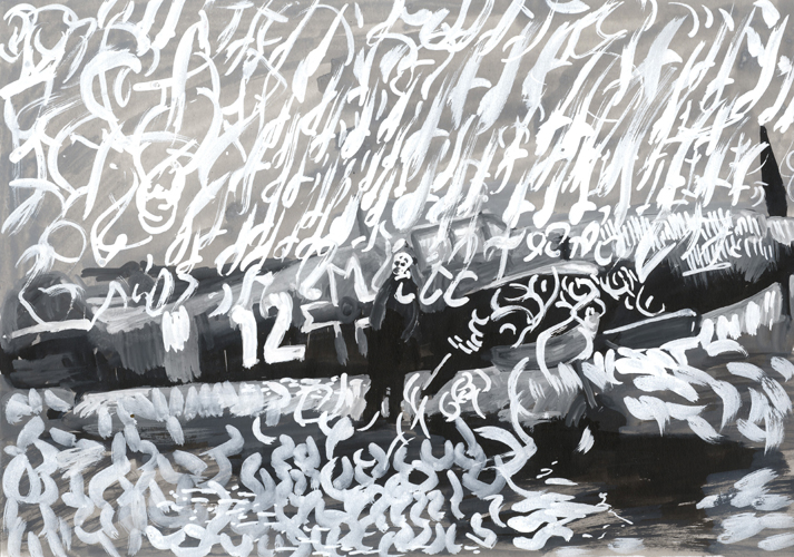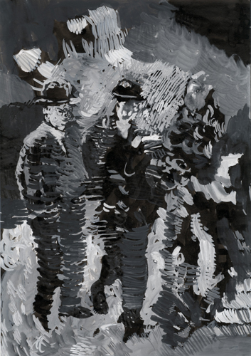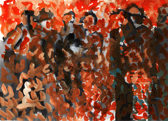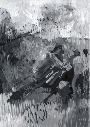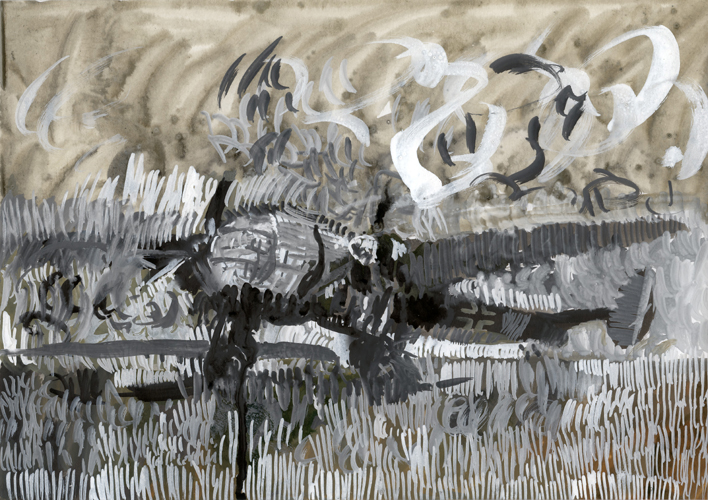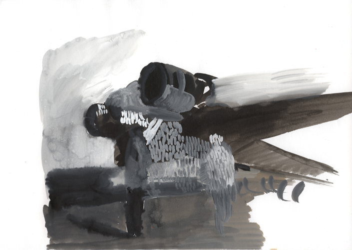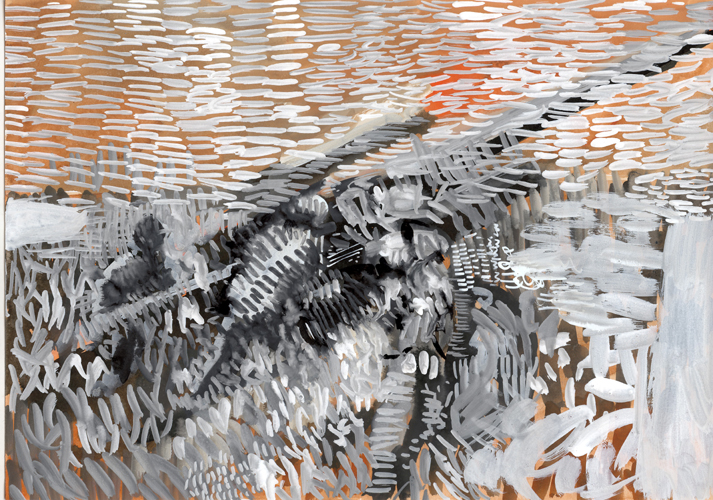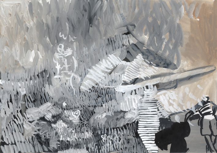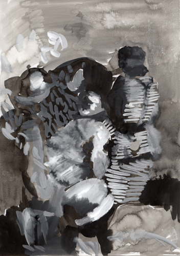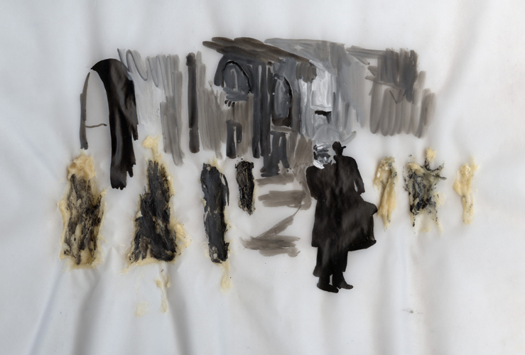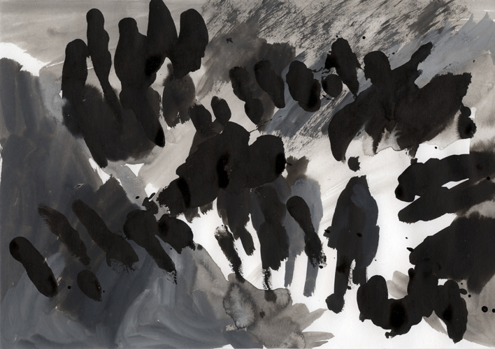 Ink, flour and glue on tracing paper, 21 x 30cm.