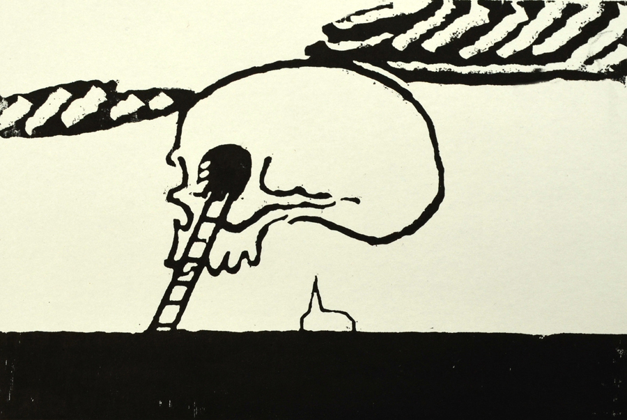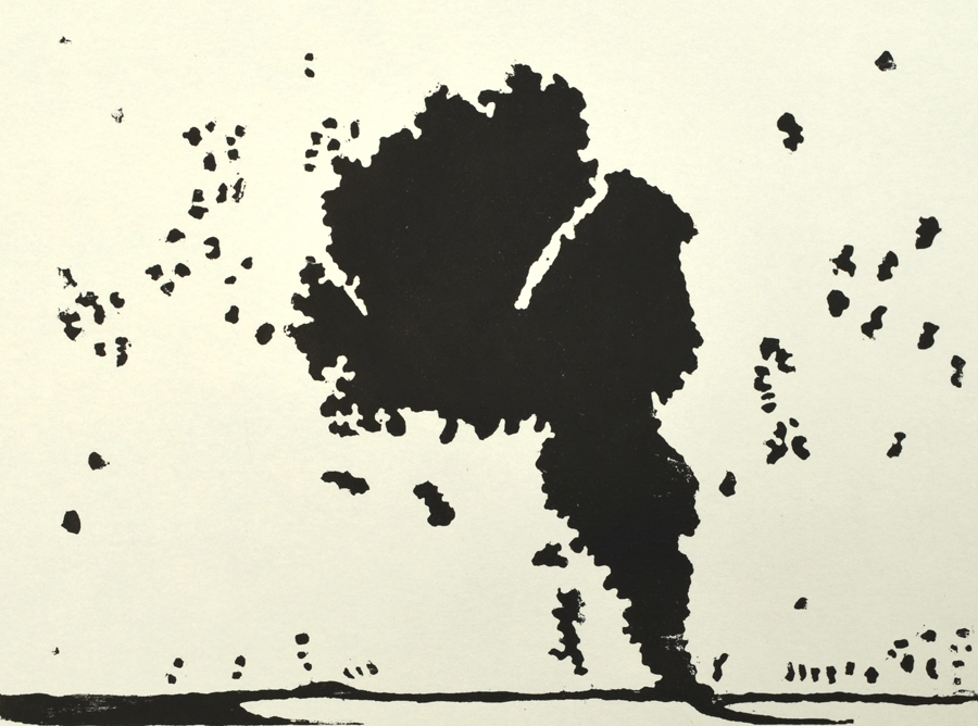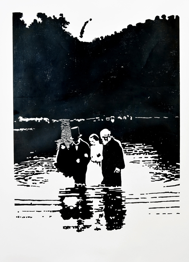 A French patrol near the Belgian border in 1939, 2016Woodcut 13 x 21cm.