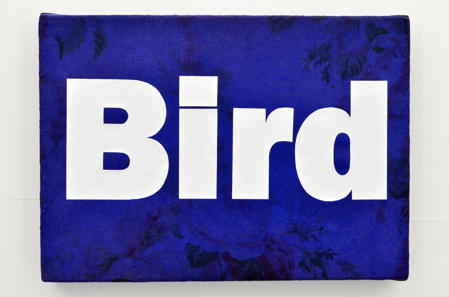 Acrylic and paper on printed cotton fabric mounted on canvas, 22 x 30cm.