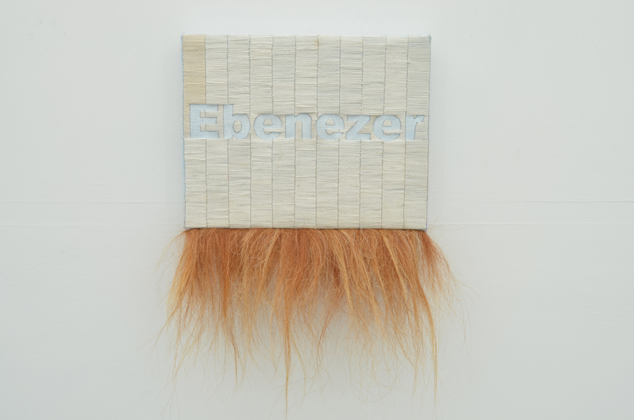 Embroidery and acrylic on canvas, with cow hair, approx. 36 x 22cm.
