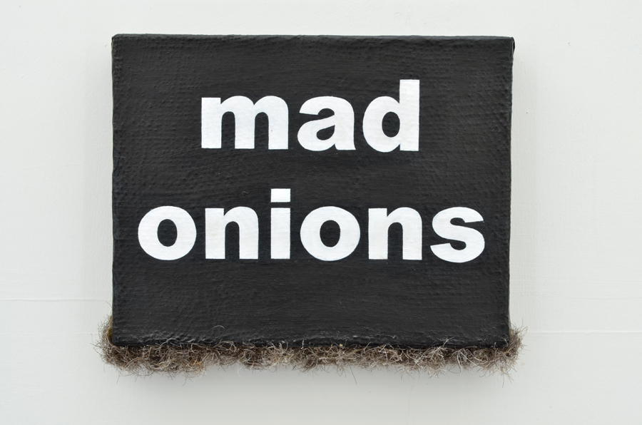 Acrylic on paper mounted on canvas, with hair, 19 x 25cm.